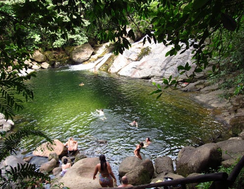 Com quatro quedas, possui vários poços para banhos e visitação da natureza através de trilhas.