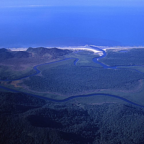 Possui uma área de aproximadamente 400 hectares (4 km²), com fundo de lama, esta ilha fluvial também conhecida como “volta morta” é coberta por densa vegetação de mangue.