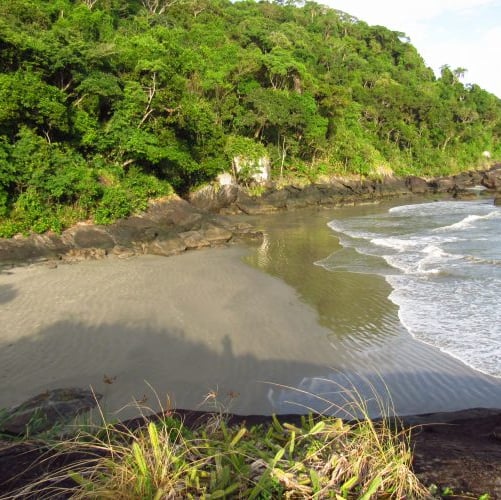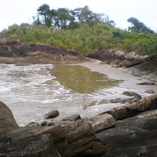 É uma praia deserta, com águas muito calmas, rodeada por costões rochosos e mata nativa, dando um visual tranquilo e encantador.