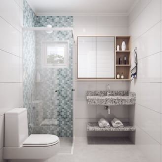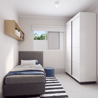 Tipo de acabamento: paredes com massa corrida, pintura com tinta acrílica, piso em porcelanato e esquadrias em alumínio com pintura eletrostática.