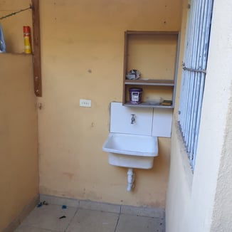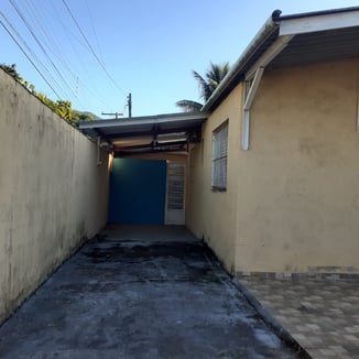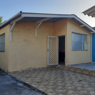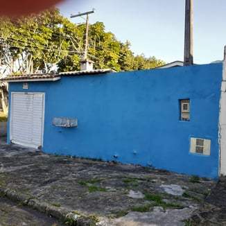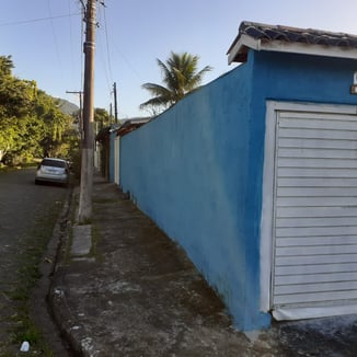 Casa com acabamento simples, mas muito bem construída, bem alta em relação a rua.