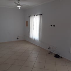 Casa térrea, 3 dorm (1 suíte) com armários embutidos de alvenaria, sala para dois ambientes, cozinha com ampla bancada de granito, sob ela armários com portas deslizantes de alumínio branco, banheiros com pias de mármore e box blindex, churrasqueira no corredor lateral próximo a cozinha, ao fundo edícula com armário embutido em madeira, banheiro e lavanderia e uma ampla área coberta, quintal na frente e lateral, garagem para seis carros.