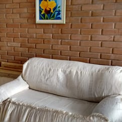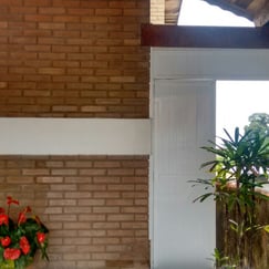 Visual Agradável dos Tijolos Ecológicos: Esta casa é construída com tijolos ecológicos, proporcionando conforto térmico e acústico, além de um visual charmoso do tijolo à vista.